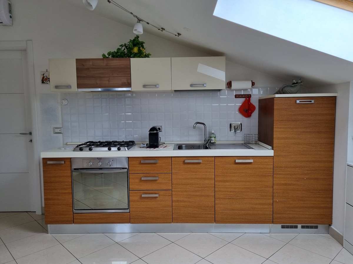 *La Mansarda di Noi2 * es un estudio de 30 metros cuadrados ubicado en una zona tranquila, plana a unos 400 metros del centro histórico y a 450 metros de las playas; está equipada con aire acondicionado, calefacción independiente, lavadora, lavavajillas, secadora. Está equipada con cocina americana y baño y es tiene un balcón privado en el entresuelo para guardar bicicletas, cochecitos y cualquier equipo de playa. De junio a siete, se prefieren las estadías semanales de sábado a sábado. Está prohibido fumar. No se admiten animales.