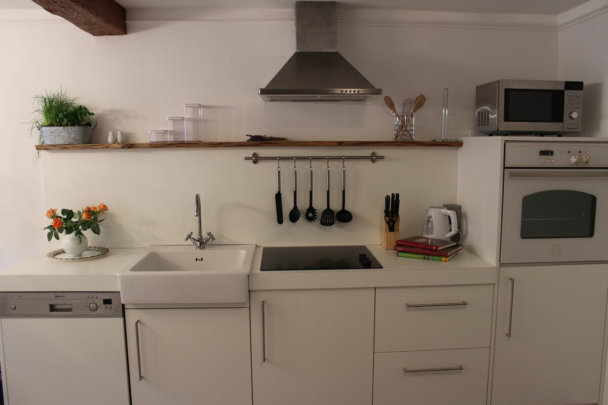 Este apartamento de vacaciones, especialmente bonito y tranquilo, se encuentra en las inmediaciones del antiguo castillo y de la iglesia de San Martín. El ático dispone de 2 dormitorios, cada uno con su propio baño. El centro del apartamento es una amplia sala de estar con cocina abierta. Además de lavavajillas, cocina y microondas, encontrará todo lo necesario. Bajo el viejo nogal también se puede descansar en paz en los calurosos días de verano. Hay un comedor y una zona de barbacoa disponibles.