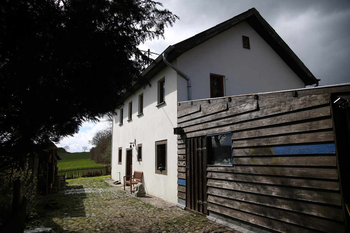 Mi marido y yo ofrecemos: un apartamento espacioso (90 m2) con todas las comodidades a nivel de jardín. En las afueras de un pequeño pueblo en el Eifel, con vistas despejadas del paisaje de colinas agrícolas con bosques. El alojamiento no es adecuado para niños pequeños. Los niños de 8 a 12 años se alojan gratis. Póngase en contacto con nosotros antes de reservar. ¡Tranquilidad y espacio! Aparcamiento y entrada privados. Terraza y jardín (2000 m2). Los perros son bienvenidos. (Háganoslo saber al hacer la reserva) NO servimos desayuno.