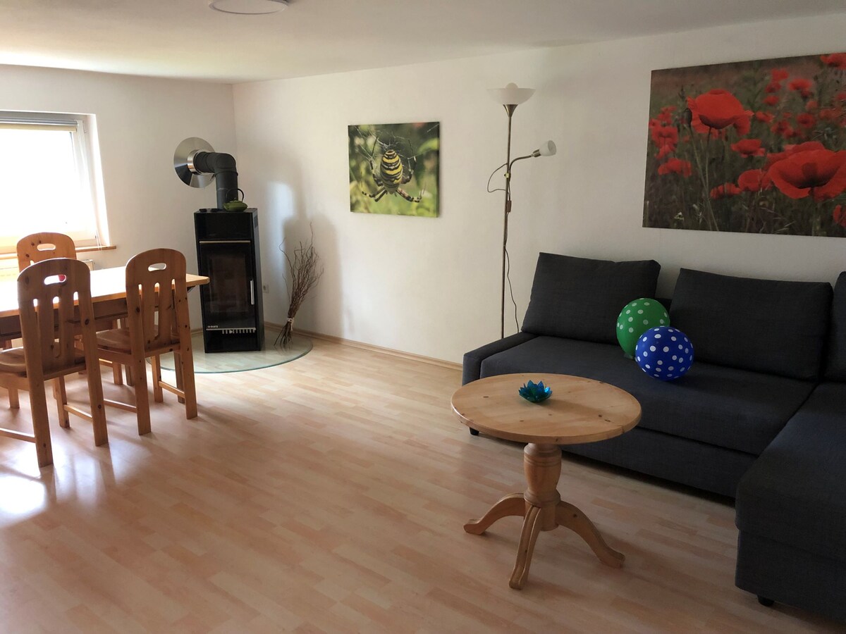 A lovely, country-style apartment with many historical elements in a refurbished farmhouse. We spent four years, till 2017, lovingly restoring our home and the adjacent apartment, using only the best ecological materials. (eg. wood-fiber insulation, as well as clay plaster on all the inside walls.) Achtung: Für größere Gruppen ab 8 Personen steht ein weiteres Apartment nebenan (100qm) mit weiterem Schlafzimmer, 2x2m Doppelbett, Küche und Bad zur Verfügung.
