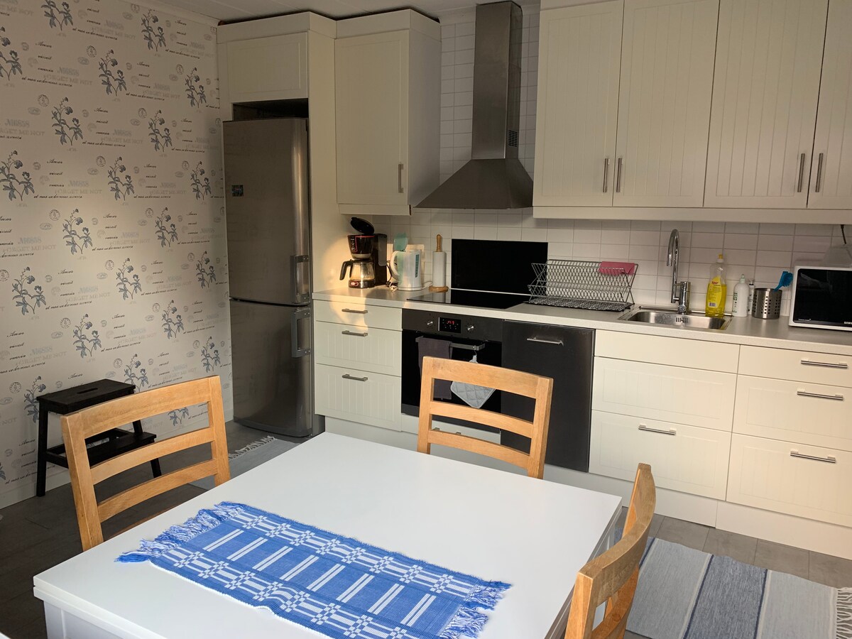 Nuestra gran casa de una sola planta, recientemente renovada, en Romstad, una de las zonas residenciales más bonitas de Karlstad, está a poca distancia a pie del centro, del río Klarälven, donde se puede bañar, del autobús acuático y de zonas verdes. Puedes disfrutar del sol de la tarde en el balcón y, por qué no, terminar la noche en nuestra sauna recién construida. Un alojamiento que se adapta a la mayoría de los huéspedes.
