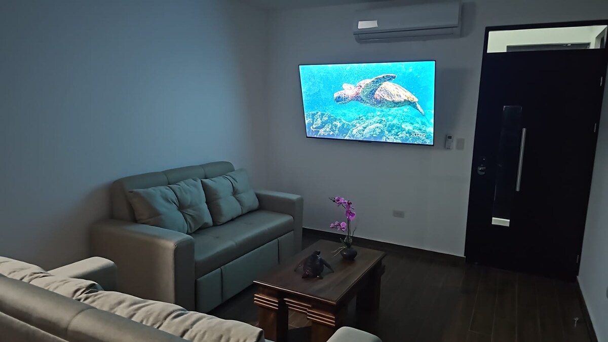 You need a place to rest before or after your international flight? This is a must-stay. Discover our apartment in a secure 5-unit building with free parking, laundry facilities, air conditioning, a king-size bed, and a private balcony. Enjoy high-speed internet and top-notch WiFi. The common area is ideal for work, meetings, or meals. A supermarket is just 90m away. Conveniently close to the airport, car rentals, Walmart, City Mall, and Plaza Real. Experience 100% self check-in and check-out.