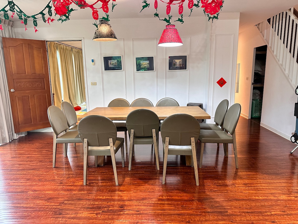 落地景觀窗庭院別墅環境優美親近大自然森林,培養朋友親人同事感情的好所在,入住花田梯下這間寬敞又安靜的房源,忘卻所有心中的煩惱。 有3345人房四個房間,其中兩個三人房在1樓,可給長輩入住。只有一個房間有馬桶,其餘皆共用。床的size在相簿上有標明。整棟有冷暖氣。 有兩個淋浴間跟三個馬桶, 有厨房鍋具盤碗杯筷齊金,烤肉有兩個烤肉爐,請自備長方形網子兩個及木炭。 有麻将及簡易型KTV。 四五月螢火蟲很多 帶一隻寵物$1500喔,清潔地板毛髮費。 早餐晚餐:可自備材料,自行厨房料理 鄰近 鴛鴦谷養殖場,鐵嶺養殖場,6號花園,紅薔薇,薰衣草森林 廚房需清理恢復,垃圾需分類 備有沐浴乳、洗髮精、厚毛巾 ,牙刷牙膏請自備。 尖石鄉新樂村水田63-5號