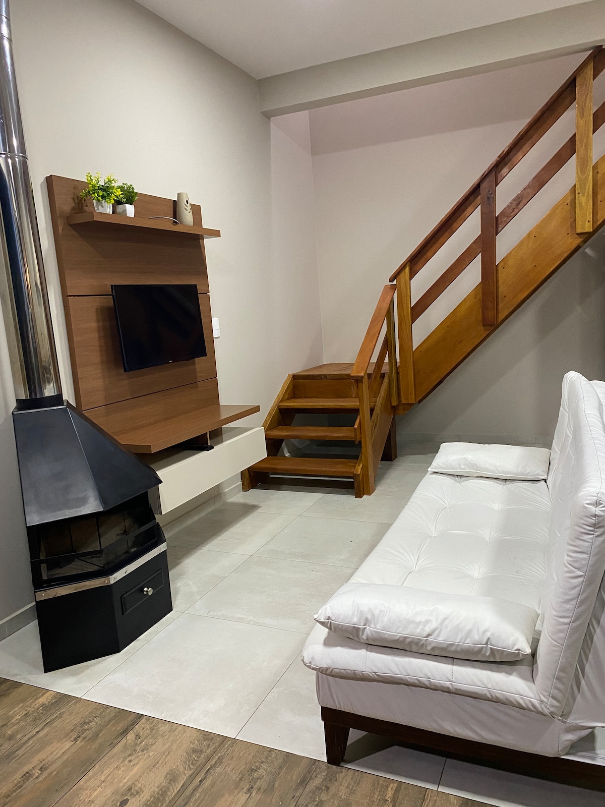 Departamento tipo penthouse, a 900 metros de la playa de Caiobá y a una cuadra de la Avenida JK, en un edificio de solo 2 unidades. Ideal para parejas y familias que buscan comodidad y practicidad: dormitorio con baño privado, cama king y colchón adicional, sala de estar con sofá cama, Smart TV y wifi, cocina totalmente equipada con zona de parrilla y aire acondicionado, y terraza con tumbonas para disfrutar de la puesta de sol. Tiene capacidad para hasta 6 huéspedes, con mayor comodidad para 4 personas. Ropa de cama incluida, lugar de estacionamiento cubierto y se admiten mascotas.