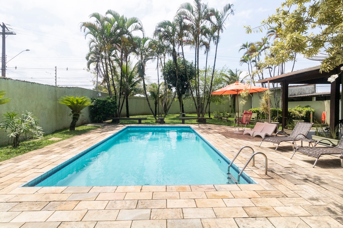 Esta casa se encuentra en una comunidad cerrada con total seguridad. Tiene piscina privada y una zona de ocio con barbacoa y mucha vegetación, el espacio es muy agradable para una reunión familiar. La casa es totalmente plana y la piscina está diseñada de una manera que los niños y los ancianos van y vienen de forma fácil y segura. Aire acondicionado frío y calor. Internet WI FI y TV por cable SKY garantizan que no se desperdicie ningún día