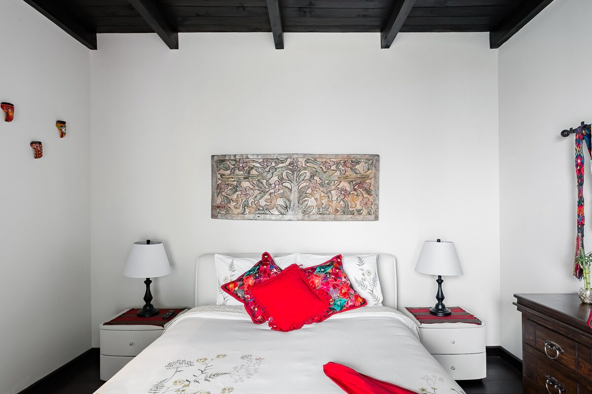 Luminoso y espacioso Loft de estilo colonial en el centro de Antigua, a sólo cuatro cuadras del Parque Central y a poca distancia de los principales puntos de interés. Este espacio único es ideal para parejas y familias que desean pasar una estancia tranquila y de calidad en el centro de Antigua.