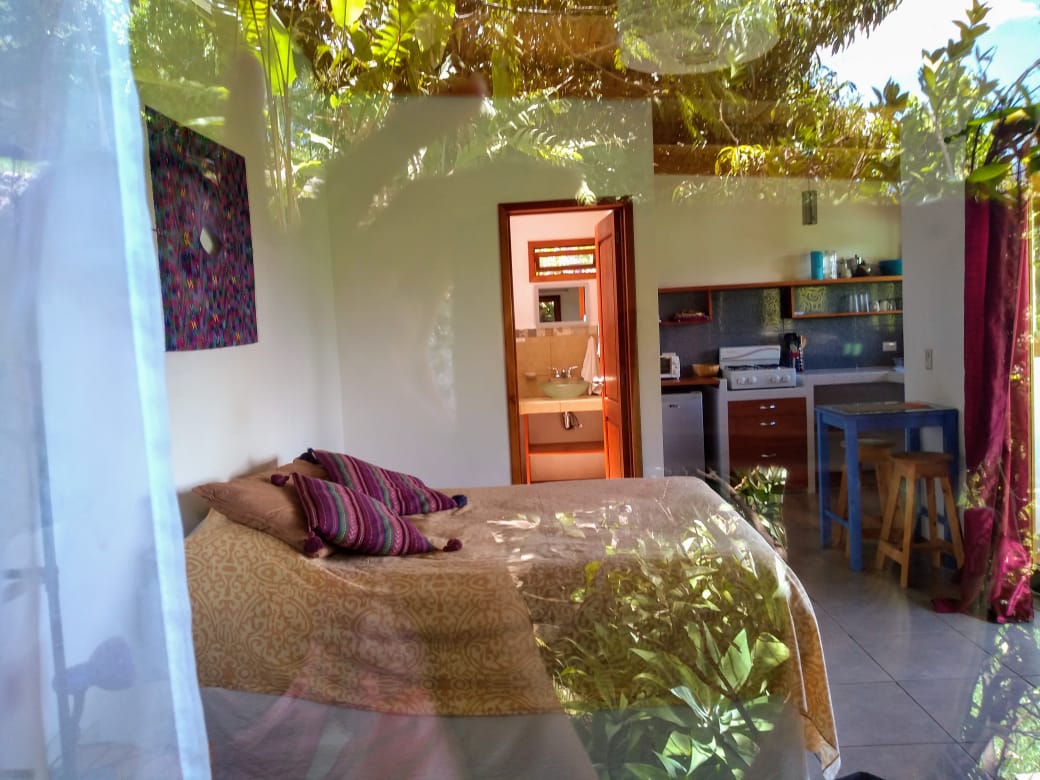 Pa'guarida, es un lindo y acogedor espacio, con espectaculares vistas al lago, los volcanes y a las montañas. Es un lugar muy tranquilo, lejos del bullicio del centro del pueblo, pero accesible caminando (10minutos ) o con vehiculo, (hay un parqueo pequeño para carro tipo sedan). La propiedad está a la orilla del lago, con muelle flotante privado, desde el cual se puede disfrutar, cayakear y/o nadar. Pregunta sobre los servicios adicionales que ofrece Pa'guarida (lavanderia, mandados, etc)