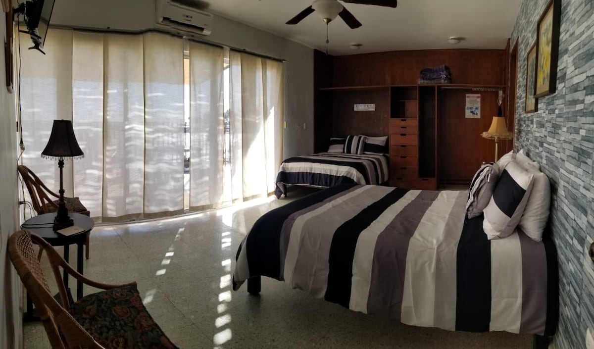 Alojamiento en San Carlos. Habitaciones con dos camas matrimoniales y baño privado. Todos los servicios. Para 4 personas máximo. Excelente ubicación. En el centro de San Carlos sobre el Blvd. Beltrones. Mucho estacionamiento y WiFi. ** Si te interesan las fechas de SEMANA SANTA, favor de mandar mensaje ** Check in: 3:00 pm Check out: 12:00 pm * Habitación en planta baja. * Entrada independiente. * Refrigerador, cafetera y horno de microondas. * PROHIBIDO FUMAR en las habitaciones.