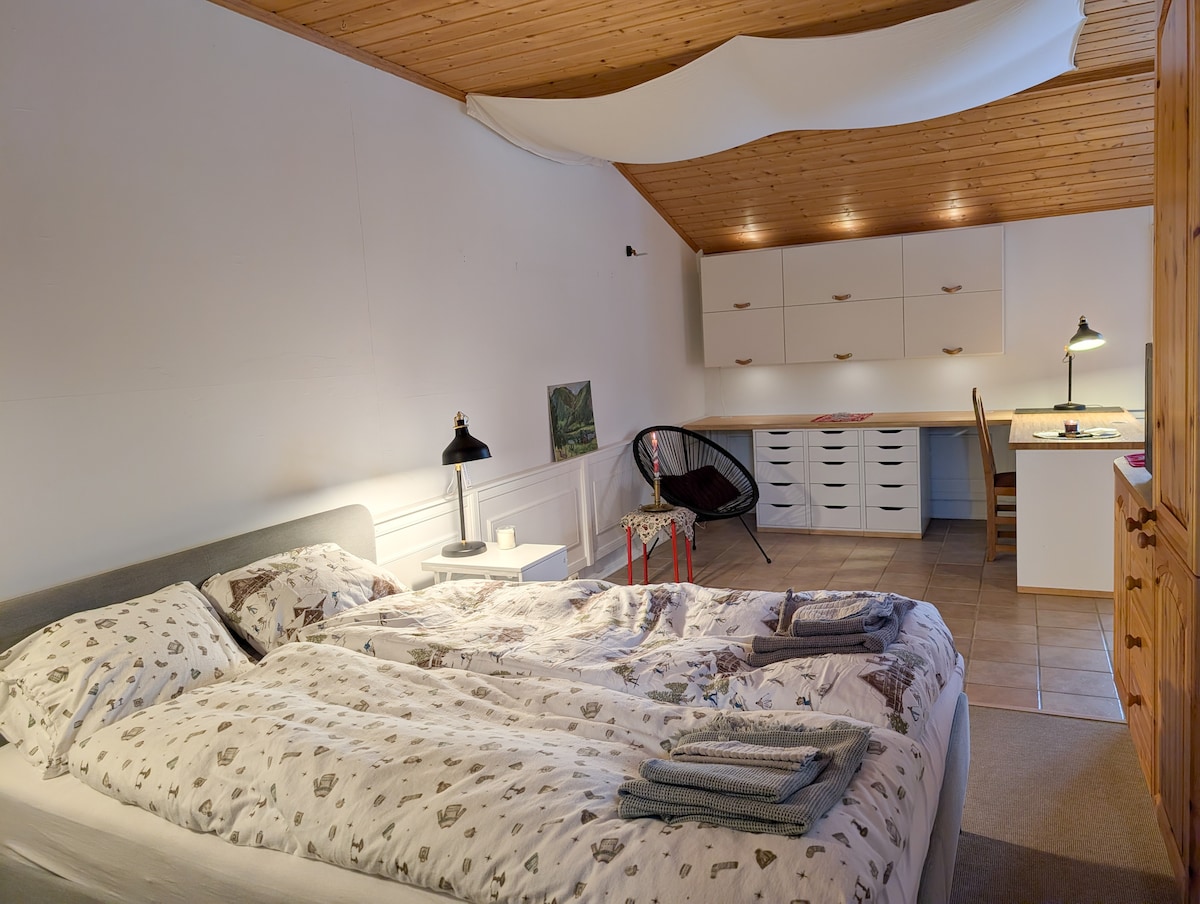 ¡Te damos la bienvenida! Alquilamos un estudio con su propia entrada y baño y espacio de estacionamiento gratuito. Centro de la ciudad a unos 3 km. Parada de autobús a unos 300 m. Tienda de comestibles a unos 500 m. Pista de hockey sobre hielo y pista de balonmano (Storhamar) a unos 2 km. El departamento es igualmente adecuado para aquellos que estudian, como para aquellos que van a Hamar en otras ocasiones. El apartamento está equipado con cama(150 cm) y wifi. El lugar no tiene cocina, pero hay hervidor de agua, nevera y microondas. Tenemos Furuberget como el vecino más cercano con buenas oportunidades de senderismo.