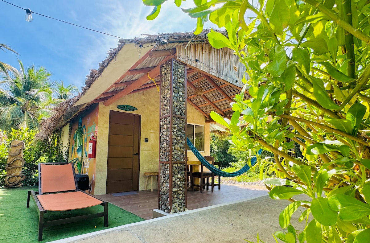 Disfruta de un espacio maravillos respira aire fresco y renuevate en el jardín. Y qué hay mejor que compartir un día tan bonito en familia comiendo en la mesa de la terraza con vistas a la naturaleza. El exterior de nuestro alojamiento es un espacio para que los niños disfruten en una alberca tipo natural, cabañas exteriores con camastros y sillones para relajarse, Cabaña completas con aire acondicionado, baño interior y cocina equipada. Estamos a unos 5 minutos caminando de la Playa