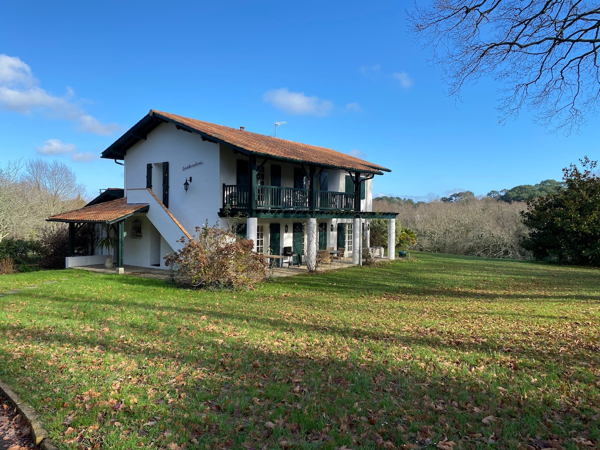 Anexo de una gran casa vasca ,con su apartamento con encanto nuevo y lujoso, situado a 5 minutos de San Juan de Luz,y a 3 minutos del campo de golf de la Nivelle, en un parque arbolado de 4 hectáreas con piscina (12X6)para compartir. Espectaculares vistas a las montañas (Rhune). Entorno muy tranquilo y relajante a pocos minutos de las playas de San Juan de Luz, Hendaya y Socoa, y a 10 minutos de España.