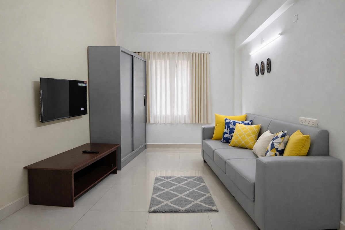 Prasama by @akrutistays A thoughtfully designed 1BHK apartment blending rustic wood tones, earthy accents, boho vibes and modern comfort. This special place is close to everything, making it easy to plan your visit, ideal for 2 adults and 1 guest with queen size bed + sofa bed. We have spent years of hosting as super host with proven quality service. We strictly follow good hygiene standards and provide guests a comfortable stay. We will do our best to provide you an amazing stay experience.
