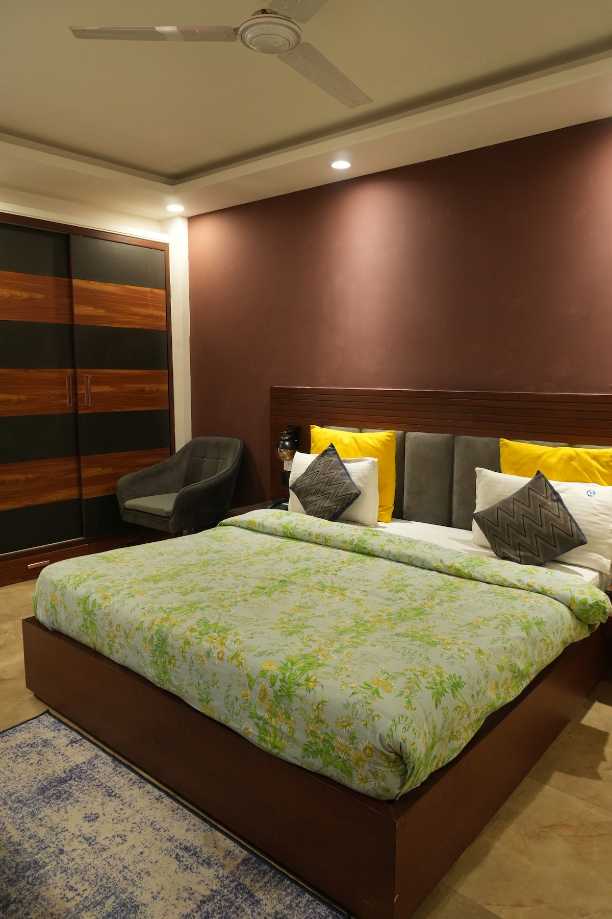 Administrado por Perch Service Apartments. La hospitalidad mejor valorada nos ha ayudado a ganar el corazón de nuestros huéspedes y varios premios desde 2011 • Apartamento tipo estudio de tamaño mediano con balcón: Moulsari Avenue • Cocina totalmente equipada (encimera, utensilios, cubiertos, nevera, microondas, etc.) • Cocina central, pedidos de habitaciones y sala de desayunos • Desayuno disponible a 295 rupias/persona • Gimnasio y salón de invitados con TV inteligente grande • A 5 minutos caminando del Ambiance Mall y DLF Cyber City. • A 500 metros de la estación de metro de la avenida Moulsari