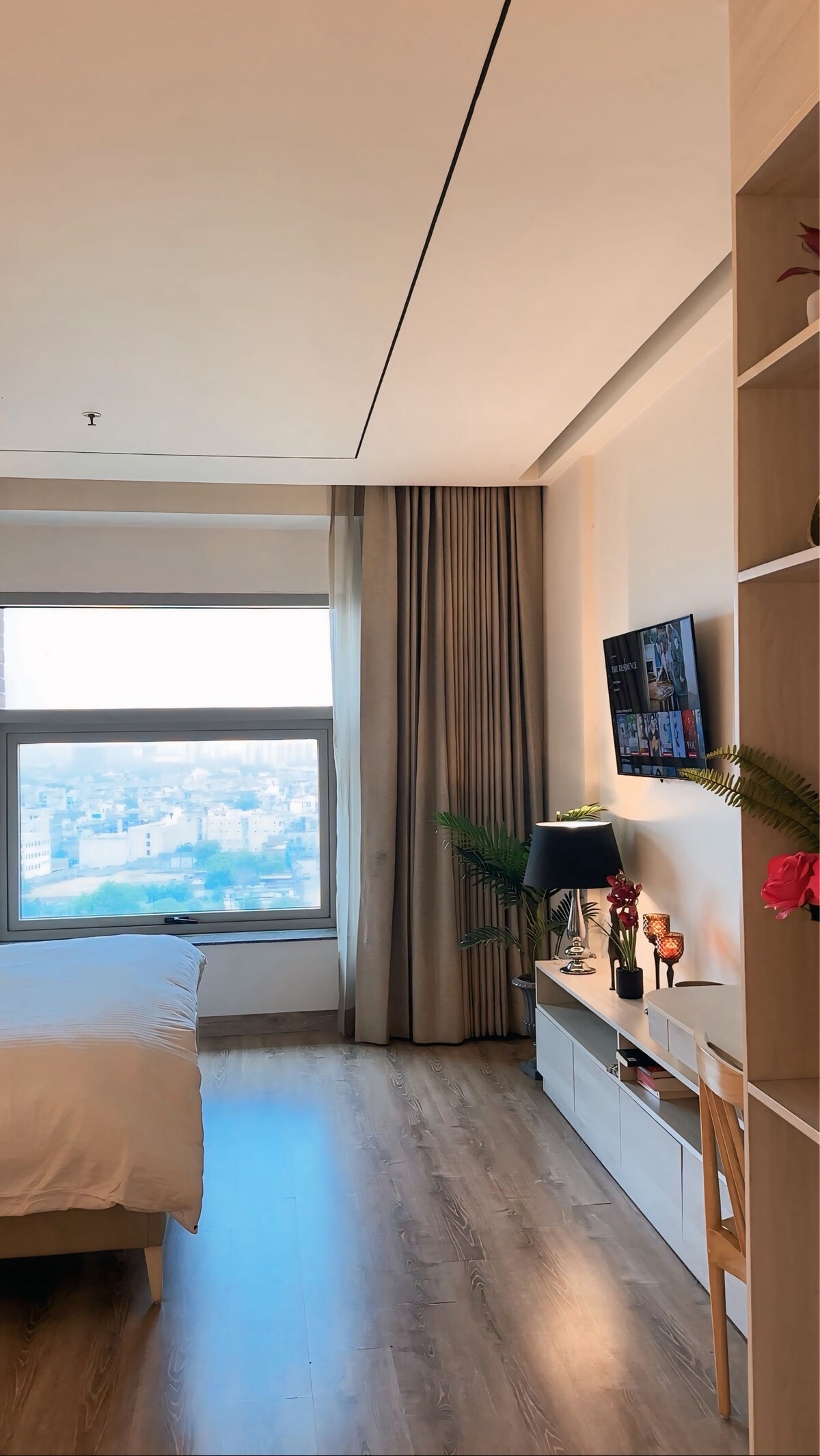 Bienvenido a Bridgerton, un estudio luminoso en AIPL Joy Street en Gurgaon. Tendrás aire acondicionado central controlado por la habitación, wifi rápido y un televisor inteligente grande con todas las aplicaciones de streaming Ott. La cocina cuenta con nevera, microondas, cubiertos finos, vajilla chic y sábanas de primera calidad para la cama y el baño. Cuando salgas, tendrás teatro INOX, Sodhi's Market, Blue Tokai, Poiz y Café Delhi Heights y muchas otras cafeterías premium en la planta baja del edificio. Perfecto para viajes de trabajo o escapadas de fin de semana.