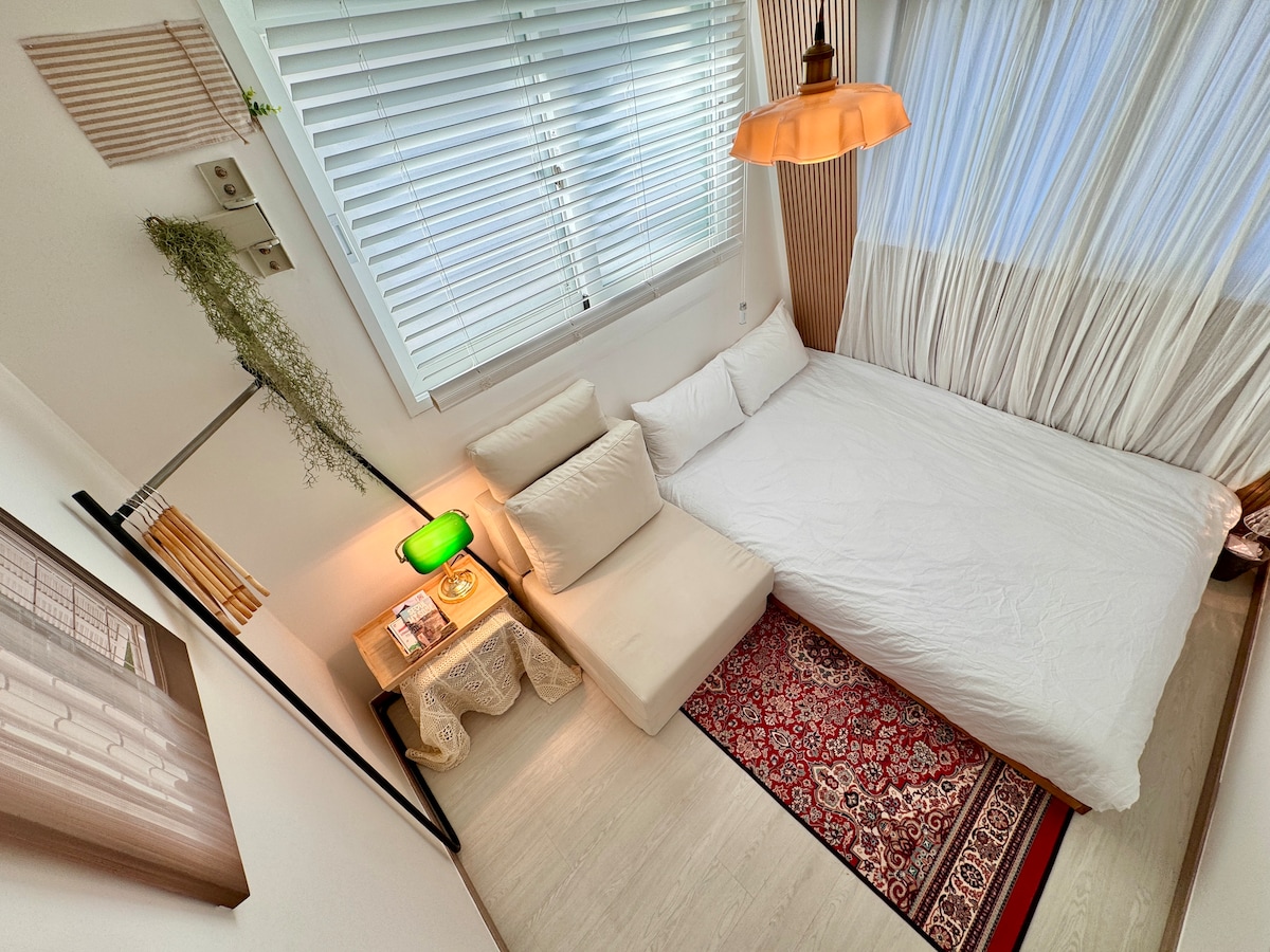 Las "COSAS NORMALES" van en contra de la normalidad del día a día. Quiero proporcionar una falta de familiaridad cómoda a través de este lugar lleno de cosas ordinarias que se pueden ver fácilmente en la vida cotidiana. Durante el día, siente la brisa fresca y la cálida luz del sol que entra por la gran ventana. por la noche, relájate escuchando tu música favorita. Llegada: 3 pm Hora de salida: 11:00 a. m. Recomienda una reservación para 2 personas. (Configuración de habitación con cama doble, 2 camas no disponibles) 3 personas: juego de ropa de cama en un sofá cama en una habitación pequeña