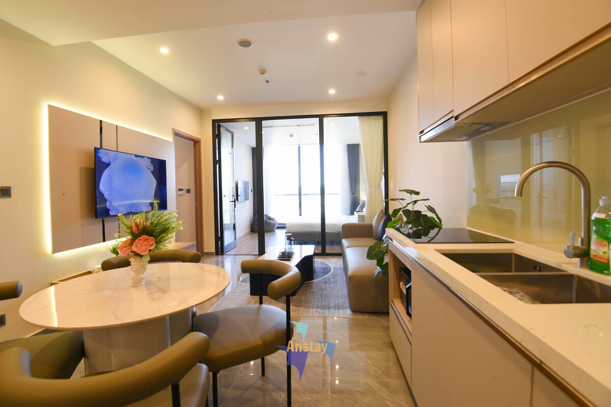 Este es un hermoso apartamento ubicado en el edificio A La Carte Ha Long, el edificio más alto situado justo al lado de la playa. Un lugar ideal para relajarse con vistas al mar. Un espacio de trabajo productivo con escritorio, wifi y servicios completos en el apartamento. Puedes llegar cómodamente a los siguientes lugares: • A 1 minuto a pie de la playa. • A 5 minutos en coche del mercado nocturno. • A 10 minutos en coche del centro de entretenimiento SunWorld. • A 10 minutos en coche del centro de la ciudad, del Museo Quang Ninh y de mucho más.