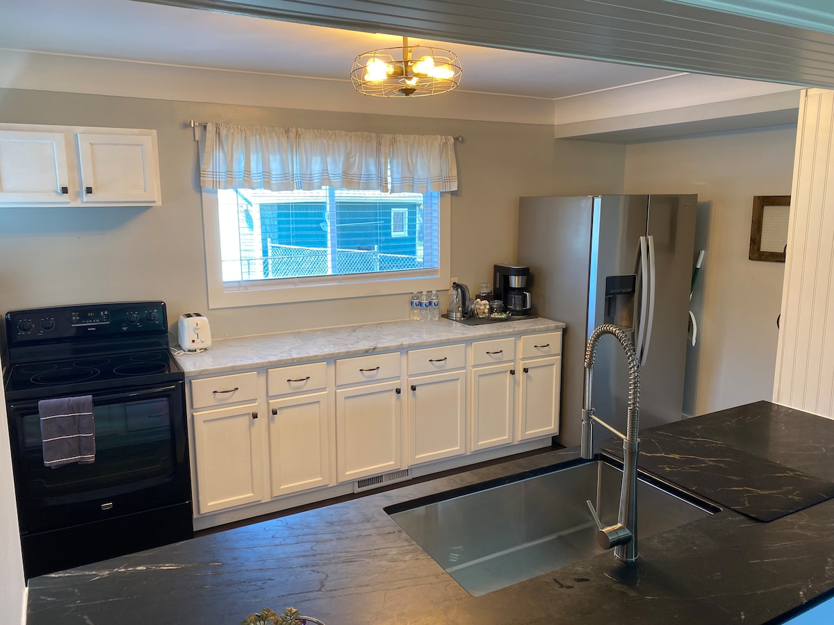 Acogedora casa de campo escondida en un barrio tranquilo a 1,5 manzanas del lago Míchigan, con un porche trasero protegido perfecto para tomar un café por la mañana. Cerca del distrito de arte de Benton Harbor, en el centro de St Joe, esta casa está rodeada de restaurantes locales, cervecerías, bodegas, campos de golf y tiendas. La playa es un destino durante todo el año, cada temporada tiene sus propias maravillas. Nota: no hay televisión y el wifi puede ser irregular debido a las colinas. Hay más de 90 escalones escalonados hasta la playa de arena de abajo. Aire acondicionado arriba, bañera original con patas de garra.