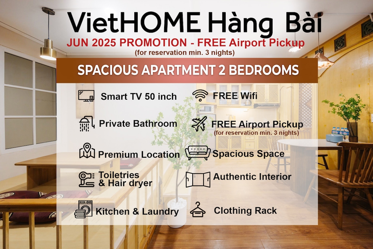 * PROMOTION FOR RESERVATIONS MIN. 3 NIGHTS: FREE ONE WAY AIRPORT TRANSFER * *Elevator in the building *NETFLIX account pre-installed *20 minutes walk to Hoan Kiem lake & Old Quarter Area Welcome to our house - a newly renovated apartment & just a short walk to Old Quarter, while quiet enough to relax from the chaotic street noise. You will get a chance to truly live a Hanoian life with local food in a secure surrounding area. While in Hanoi, live like a local!