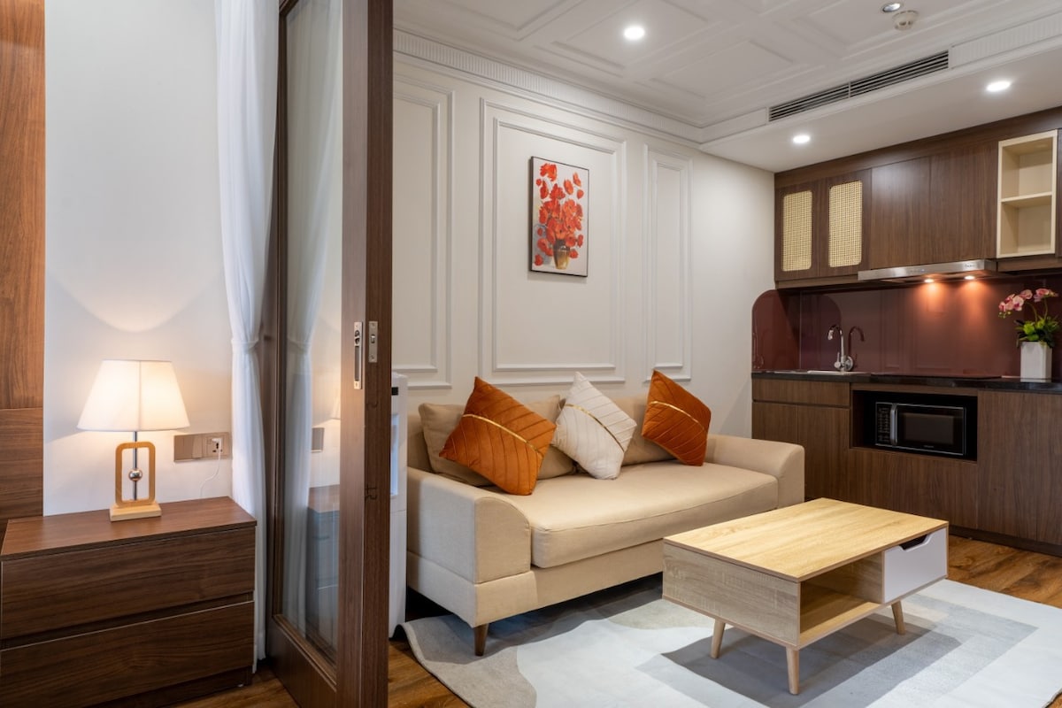 Bienvenido a Thaicom Apartment, tu hogar perfecto para experimentar el encanto de Hanói desde su corazón. Nuestro espacioso apartamento de 70 m² con un dormitorio está cuidadosamente diseñado con dos balcones privados, que ofrecen comodidad y tranquilidad. El espacio combina comodidades modernas con detalles cálidos, lo que garantiza una estancia acogedora. Situado en la 7ª planta con ascensor y aparcamiento gratuito para motos, es tranquilo y privado, pero a solo unos minutos de la vibrante vida de la ciudad.