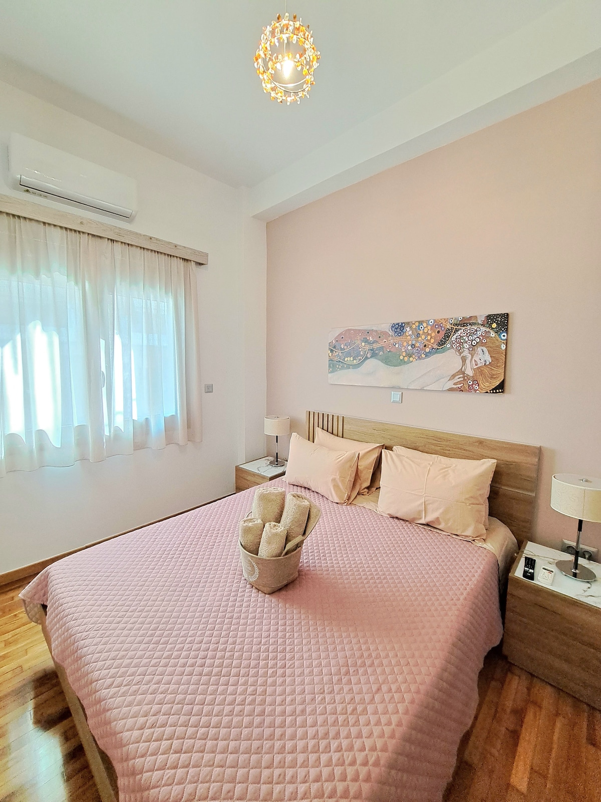 El apartamento está situado en el centro del Pireo y junto al puerto. Metro, conexión al aeropuerto, transbordadores, tren, tren suburbano, estación de autobuses y tranvía, todo a 100 metros. ¡Ubicación céntrica! El apartamento en el que te vas a alojar es nuevo y está totalmente renovado con dormitorio, cocina, sala de estar de 69 metros cuadrados con altos estándares y diseñado por un excelente arquitecto. Ubicado en el cuarto piso. ¡Es cómodo y lujoso para que tu estancia sea inolvidable!