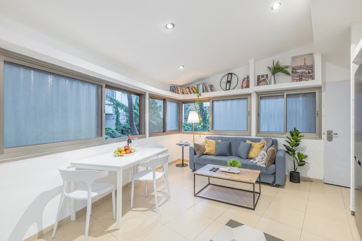 ¡Vive la auténtica experiencia de Haifa en este encantador estudio de 25 m², ubicado en un edificio de 100 años a solo 5 pasos de la bulliciosa calle Ben Gurión! A ✔ pocos pasos de los jardines y cafés bahá'ís Jacuzzi ✔ privado: relájate después de un día de exploración en tu propia bañera de hidromasaje relajante Encanto ✔ histórico + comodidad moderna ✔ Perfecto para parejas: espacio íntimo y elegante para una escapada romántica. Cama tamaño queen, cocina pequeña, TV inteligente, wifi rápido A 1 minuto de los bares, a 5 minutos de los jardines Reserva ahora y vive el corazón de Haifa.