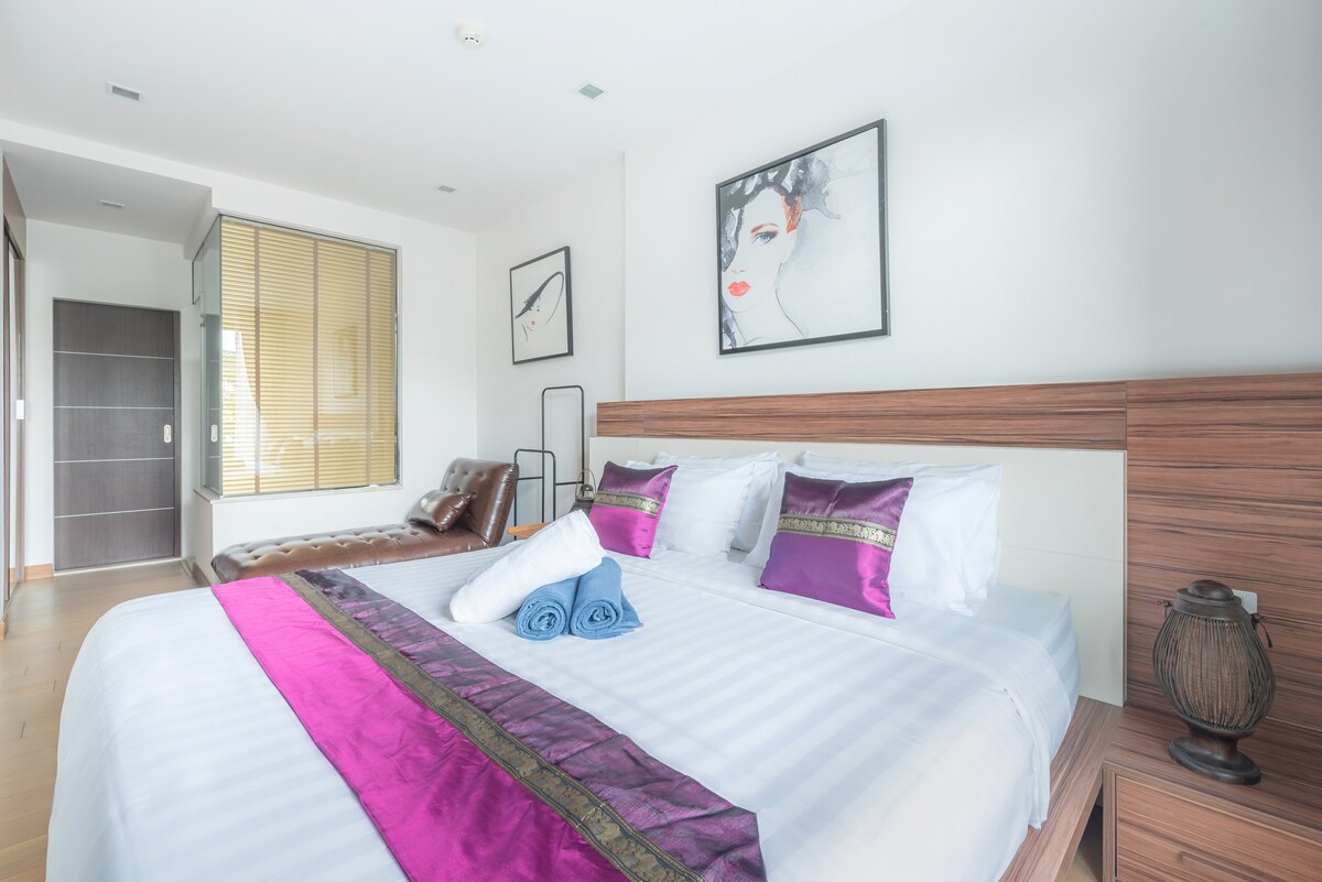 A diferencia de las típicas unidades más pequeñas, estás reservando un refugio exclusivo de 46 m2, lo que lo convierte en uno de los espacios más grandes y lujosos disponibles en el edificio. Estamos perfectamente situados en la planta 15.ª, lo que te garantiza una vista panorámica ininterrumpida que simplemente no se puede igualar con las plantas inferiores. Disfrutará de unas vistas despejadas de la magnífica montaña Doi Suthep, enmarcada perfectamente por su ventana y su enorme balcón privado. La unidad cuenta con una cama tamaño king y un televisor LED inteligente Ultra HD 4K de 47".