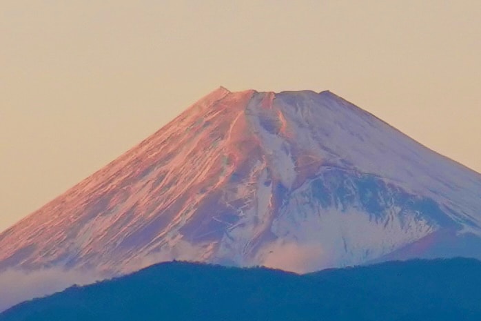 Puesta de sol en el monte Fuji y vistas al mar, vida portuaria local