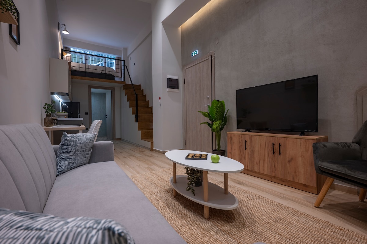 Con un diseño contemporáneo y moderno, nuestro apartamento C1 tiene un tamaño total de 41 metros cuadrados. El apartamento ofrece un dormitorio espacioso equipado con colchones anatómicos, una cocina totalmente equipada, Netflix e internet superrápido (100 Mbps) que te ofrecerán no solo otra estancia, sino una experiencia inolvidable. A solo 100 metros de la plaza Aristotelous, la plaza Santa Sofía, la torre blanca y la iglesia de Agios Dimitrios. Desde el balcón se puede ver el horizonte de la ciudad.