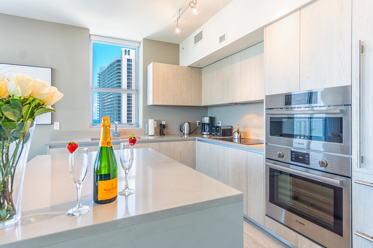Espectacular apartamento de 1 dormitorio y 1 baño en el piso 18 con impresionantes vistas intercosteras y al mar. Situado en el Beachwalk Resort, que ofrece piscina, gimnasio, bistró, internet de alta velocidad, centro de negocios, seguridad las 24 horas, los 7 días de la semana, transporte a la playa y mucho más. Ven a disfrutar de todo lo que el sur de Florida tiene para ofrecer. Características: 1 cama tamaño king. 1 baños Cocina totalmente equipada. Salón Lavadora/secadora Acceso al balcón desde ambas habitaciones con vistas intercosteras y al mar. * Los ascensores tienden a atascarse durante la temporada alta.