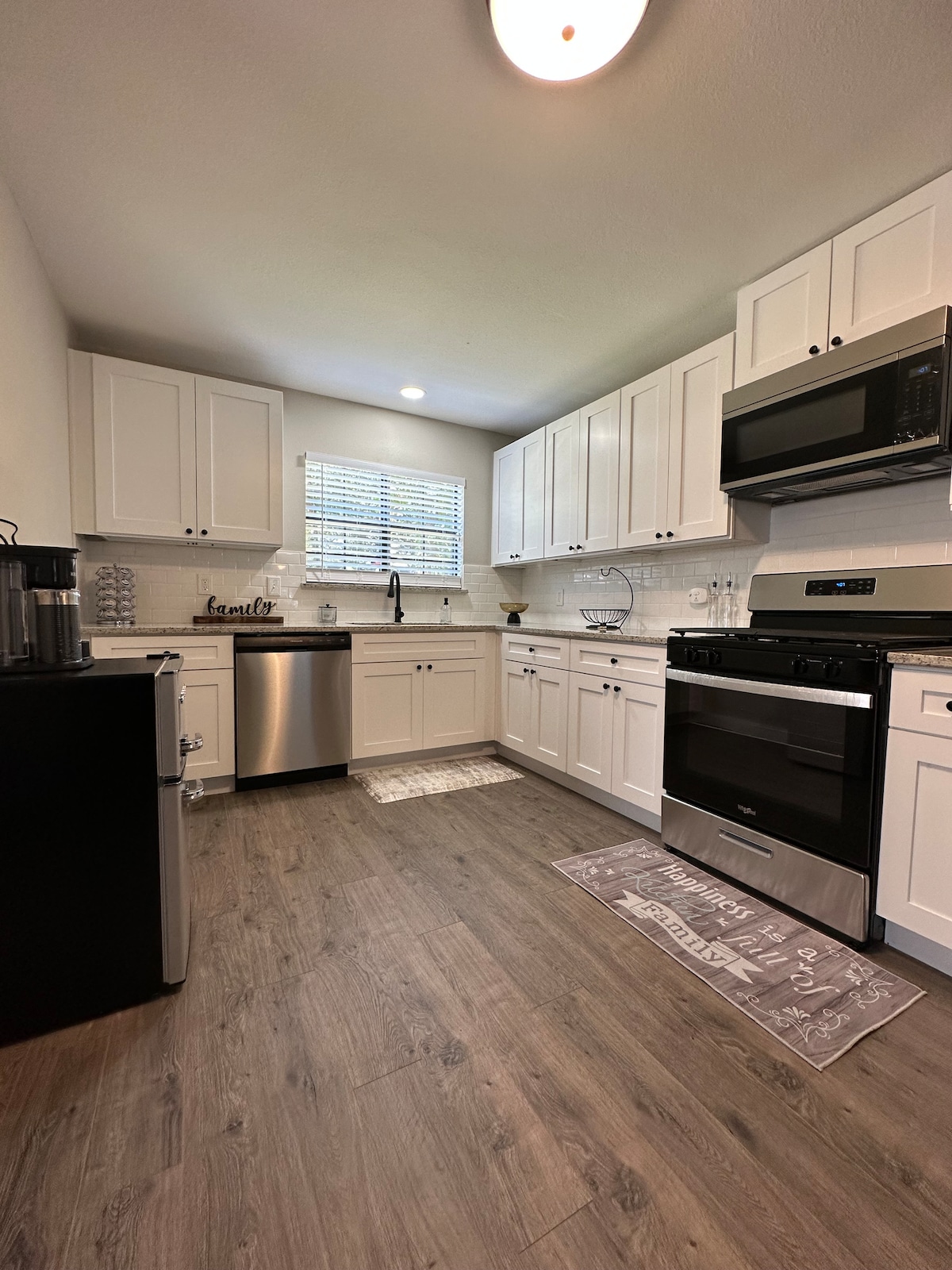 Disfruta de una estancia en una casa de estilo rancho con un toque moderno, ubicada en un acre de hermosos árboles altos y sombreados, ¡con piscina! La casa cuenta con un gran solárium con una segunda sala de estar y mesa de ping pong. Todas las habitaciones tienen ropa de cama de lujo y armarios. El dormitorio principal tiene una cama tamaño king, un armario grande y un baño con ducha a ras de suelo. Dos habitaciones tienen camas tamaño queen. ¡Baño completo para huéspedes equipado con bañera para relajarse después de un día de actividades! Acceso completo a la casa con mucho espacio de estacionamiento y también para vehículos recreativos/barcos.