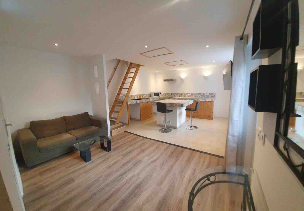 Loft espacioso, luminoso y muy tranquilo, perfecto para una estancia en familia. 🌿 Naturaleza: paseos a pie por las marismas de Arleux, el canal de la Sensée y senderos llanos adaptados para niños. 🎠 Actividades: parque infantil, granja escuela a 10 minutos, posibilidad de pesca en las inmediaciones. 🖼️ Cultura: museo Arkéos, museo Matisse, museo de las minas de Lewarde, etc. Un lugar tranquilo, cómodo y revitalizante para grandes y pequeños.