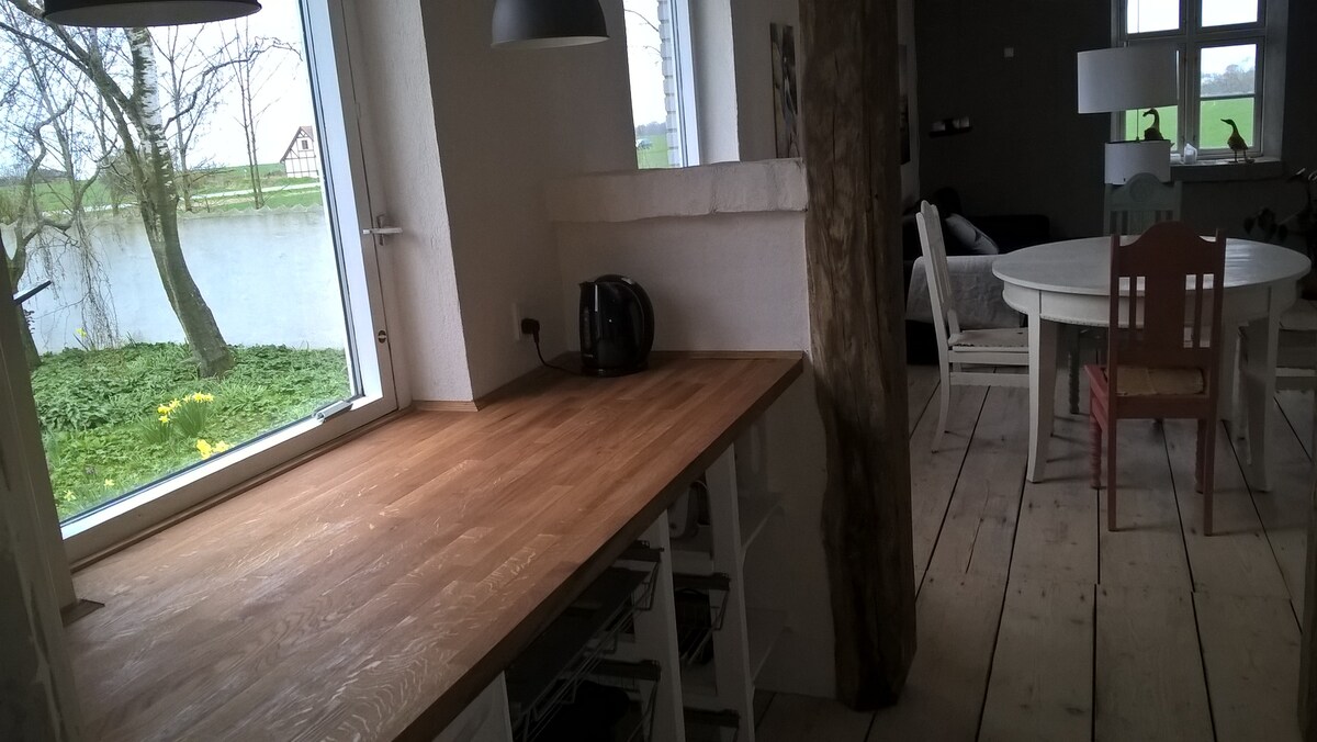 Apartamento en encantadora granja de 1866. Situado en el primer piso, junto a otro apartamento. Contiene un amplio salón con cocina, comedor y sofá. 2 dormitorios y aseo con baño. La zona es para los amantes de la naturaleza, en medio de la naturaleza cruda de Bornholm, con un lago de cantera. Cuando abras la ventana, te recibirá un coro de canto de pájaros. Hay una entrada común, zona de jardín, parrilla, etc., con otro apartamento