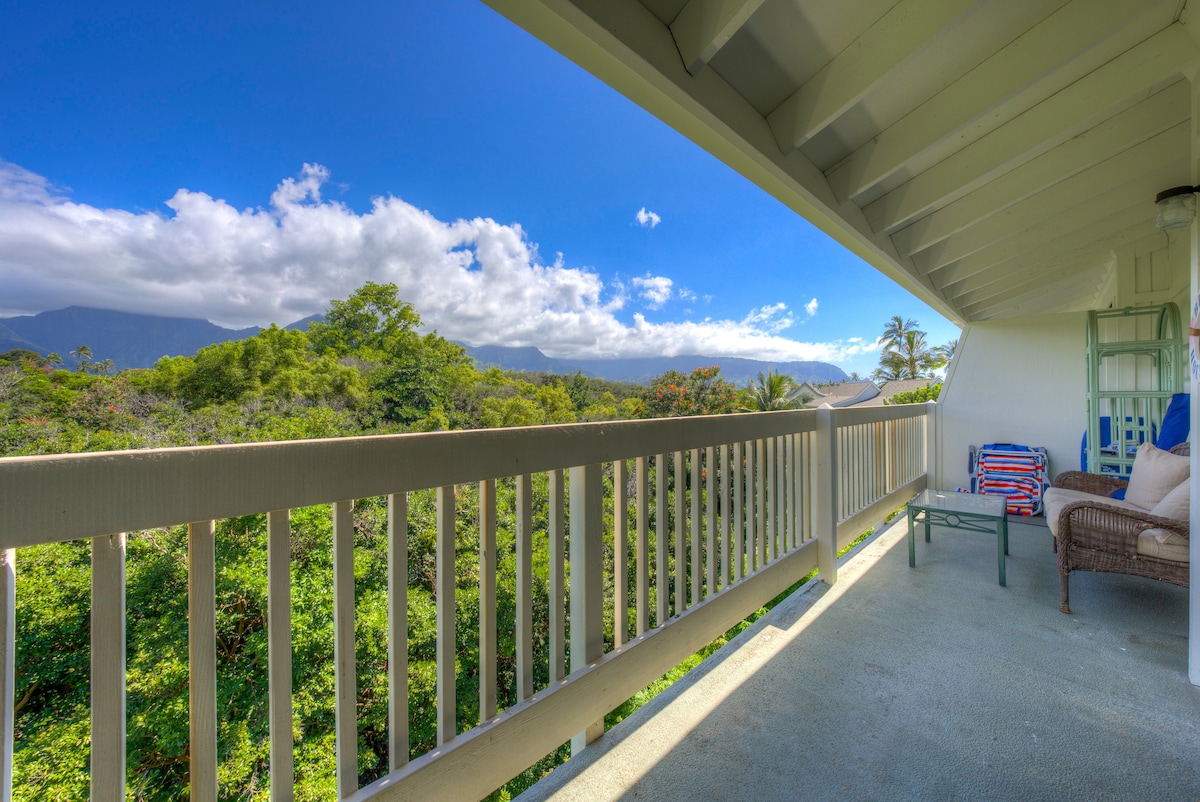 Suite moderna en Princeville con vistas a la montaña, aire acondicionado