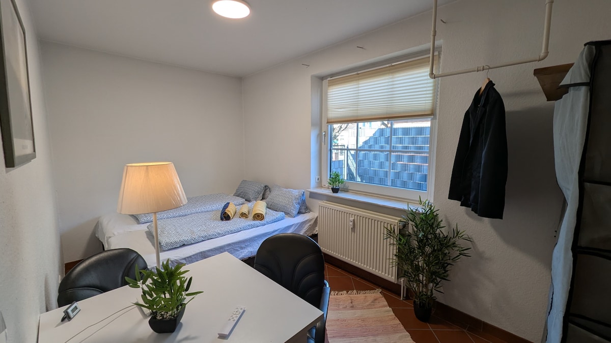 Desde nuestra casa está a 2 minutos del siguiente tranvía, que te lleva en 15 minutos a la ciudad o a la feria/Messe. Los supermercados Diffeenet (Lidl, Aldi, Edeka), comestibles, farmacia, backery cualquier restaurante (alemán, griego, turco, pizza, hamburguesas) está a 5 minutos a pie.