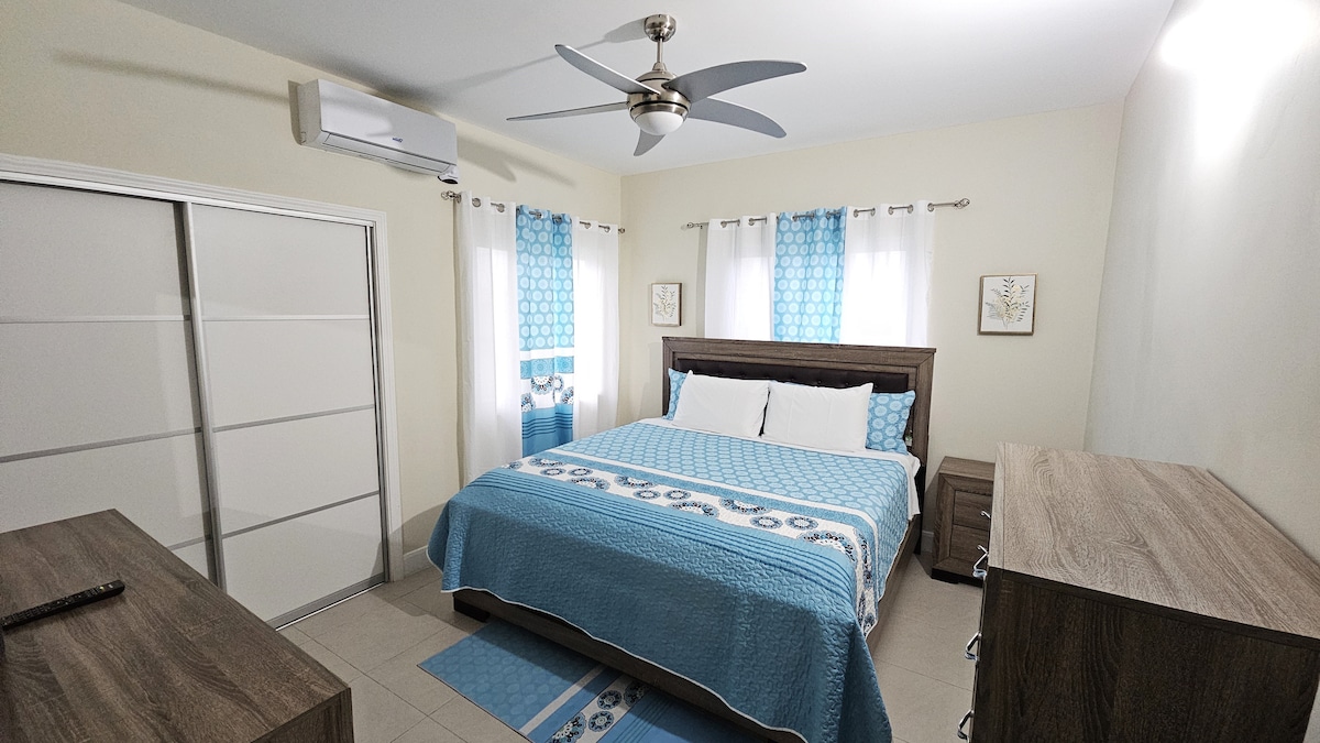 Escápate al hogar lejos de casa en una casa privada y acogedora de dos dormitorios, dos baños, cocina, lavandería, sala de estar y comedor. Esta casa de reciente construcción está en una nueva comunidad cerrada moderna. Aire acondicionado y ventilador de techo en ambos dormitorios y sala de estar, electricidad solar y agua caliente, tanque de agua, internet Starlink, encimera de cocina y baño de granito, lavadora, secadora, armario con puerta corredera, valla trasera, patio grande, entrada y planta abierta. Estas son algunas de las muchas características.