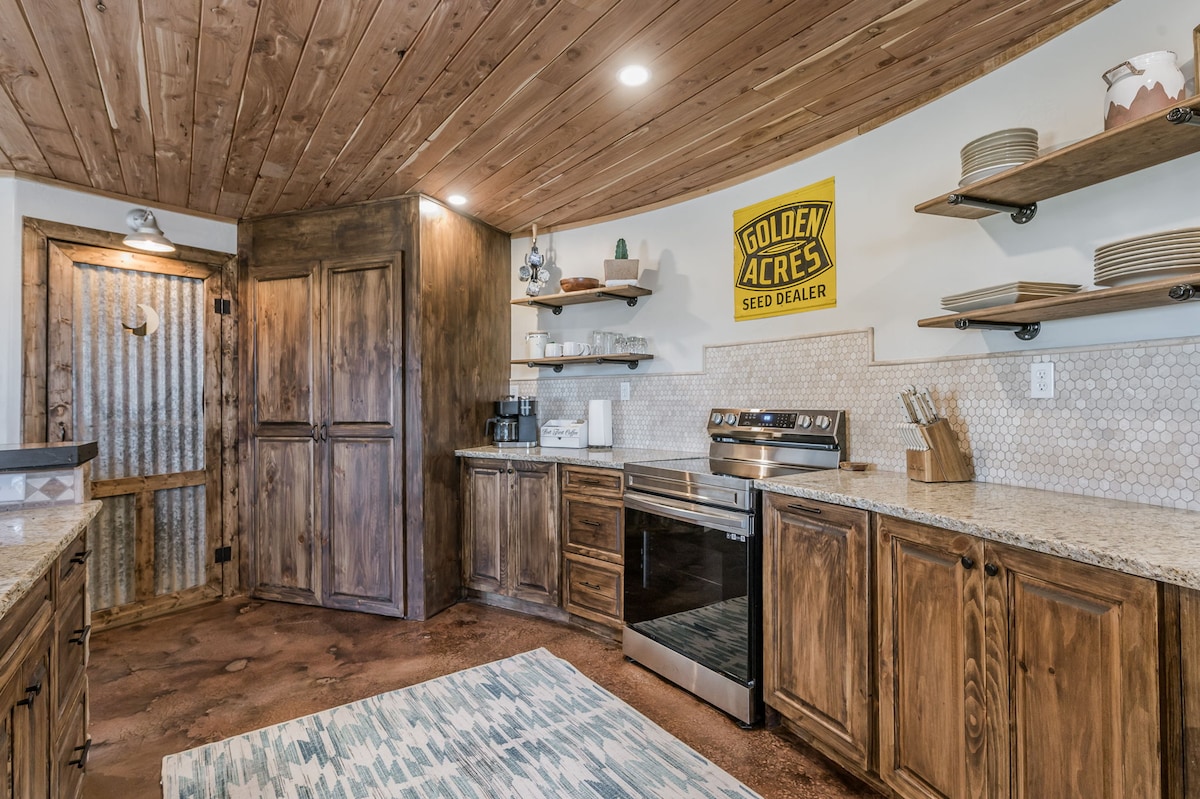 Rustic Divide, una pequeña cabaña de 68 metros cuadrados, ofrece un encanto cálido y rústico con armarios teñidos y detalles en madera natural. La luminosa sala de estar está bañada por la luz natural, que conduce a una cocina totalmente equipada y un baño tipo spa. El dormitorio incluye una cama tamaño queen con amplio almacenamiento, mientras que el loft de arriba cuenta con otra cama tamaño queen y unas impresionantes vistas al cañón. En el exterior, relájate en el patio privado con una mesa de bistró y una parrilla, todo situado justo en el borde del cañón de Palo Duro.
