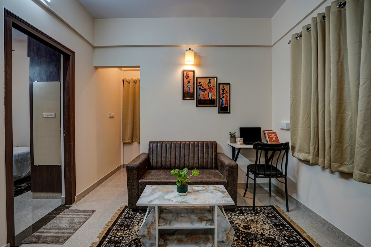 Note: Due to local regulations, currently hosting Indian guests only Premium 1 BHK on FF, ideal for upto 4 guests, in HSR Sec.2, steps from cafés, supermarkets, parks & a lake With queen bed, sofa bed, sofa, crisp white bed and bath linens, study table, dining table, dressing mirror, wardrobe, 43" Smart TV, 200 Mbps Wi-Fi, fridge, induction stove, kettle, cookware, basic cooking ingredients, dinner set, RO water, cloth washer, drying stand, geyser, toiletries, hair dryer, iron table & inverter