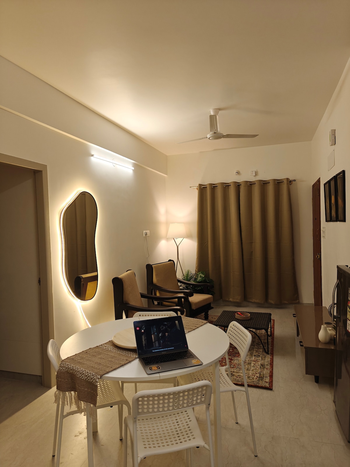 A cozy, modern 1BHK retreat with a charming canopy balcony, high-speed Wi-Fi, and thoughtfully styled interiors, designed for comfort in the heart of the city. Located near Zepto,Vaishnavi Tech Park, Wipro, and RGA Tech Park, our home is perfect for work and leisure. Enjoy top breweries like Byg Brewski, Bier Library, and Sarjapur Social nearby. Beige & Breeze offers a cozy balcony, stylish interiors, and a warm ambiance your perfect retreat in the city.