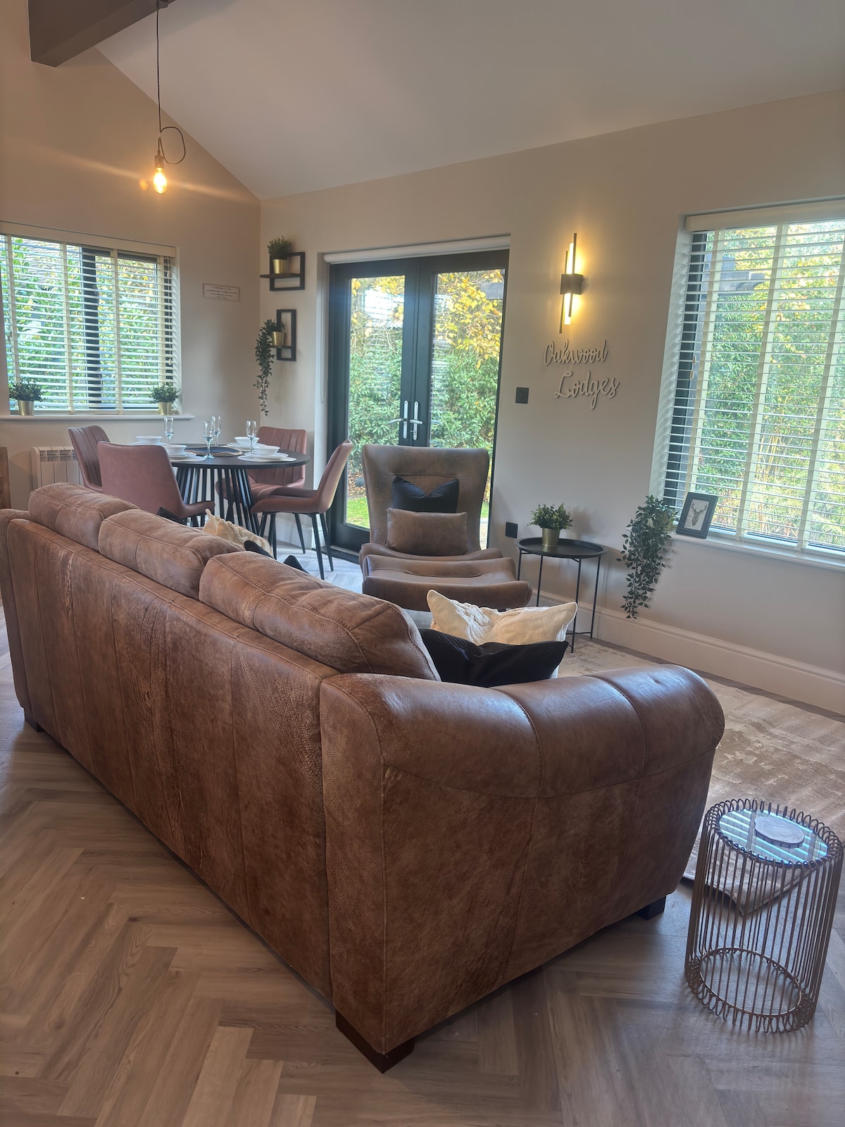 Acogedora cabaña/lodge de madera con calefacción central rodeada de hermosas vistas al campo. Ideal para aquellos que quieran estar a una milla de nuestro pueblo local, pero en una zona tranquila. Paseos para todos los niveles desde nuestra puerta. Se admiten dos perros de tamaño mediano. Los pubs locales admiten perros y tenemos muchos lugares para comer localmente. Vistas increíbles, una estufa de leña, una cama tamaño king con dosel muy cómoda, un sofá cama fácil de usar y una ducha fantástica han recibido comentarios de 5* por parte de muchos huéspedes satisfechos.