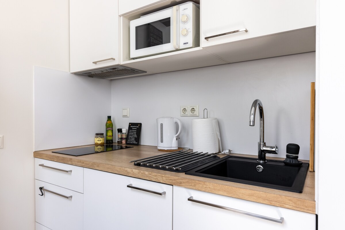 The spacious (60m2) and modern, yet cozy studio (=open-plan apartment) awaits you in a perfect location, within a short walking distance from everything that Tallinn City Centre has to offer, incl the medieval Old Town! The apartment features fully equipped kitchen and bathroom with a jacuzzi. Free parking available in locked courtyard. A public transport stop and taxi stand are within 200 metres. Perfect for couples, friends and families, but also for solo adventurers. Business traveller-ready.