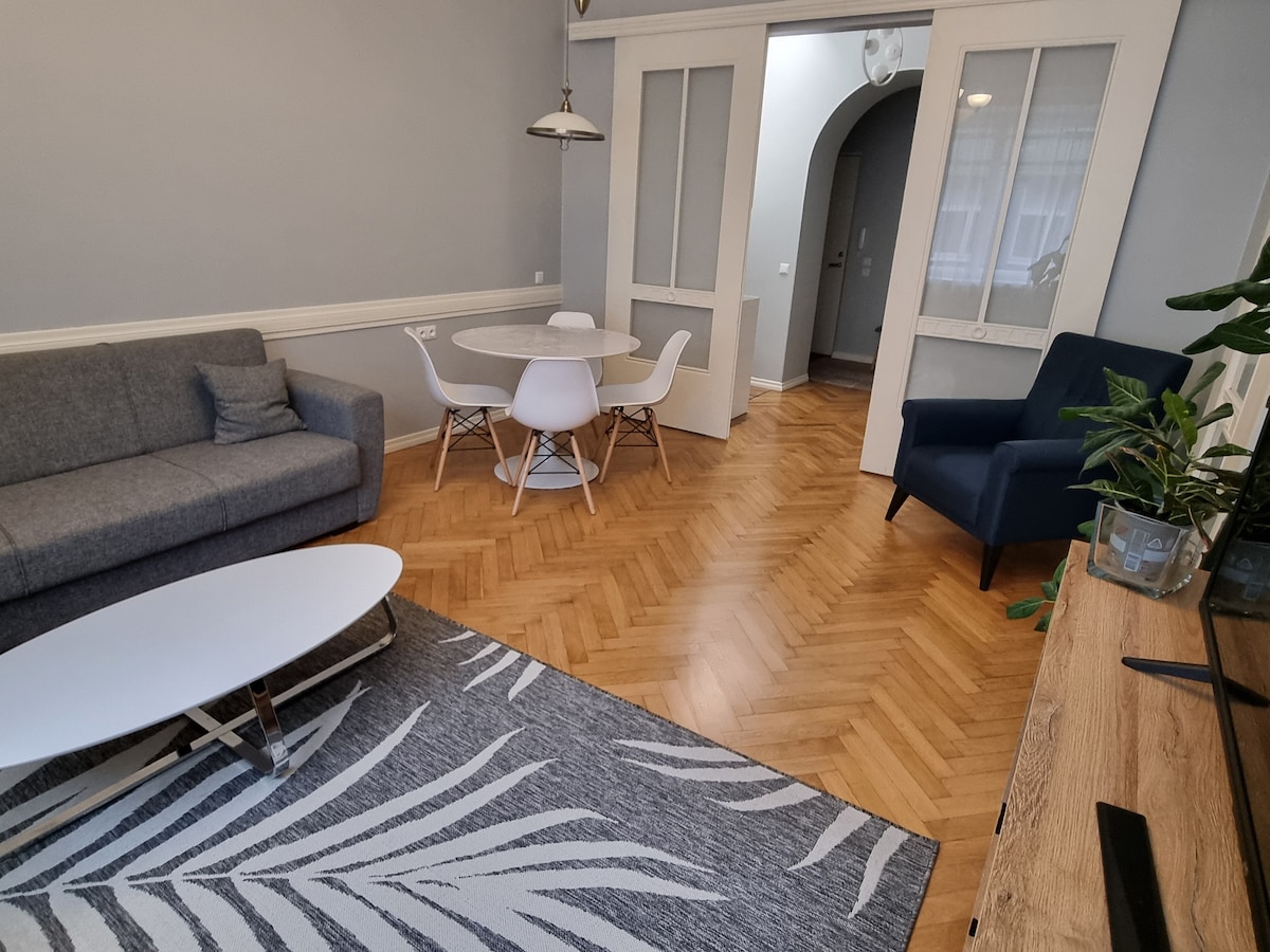 El alojamiento está situado en pleno centro. Todos los huéspedes apreciarán la proximidad a los lugares de interés. El casco antiguo y el centro de negocios están a poca distancia. Cómoda conexión de transporte. Cerca de los apartamentos hay aparcamientos urbanos de pago. Está estrictamente prohibido fumar en los apartamentos. Las fiestas están estrictamente prohibidas. En caso de incumplimiento, se aplicarán sanciones. No se admiten animales. Alojamiento. 2 dormitorios separados, cocina, sala de estar, baño, La cocina está totalmente equipada con vajilla y electrodomésticos.