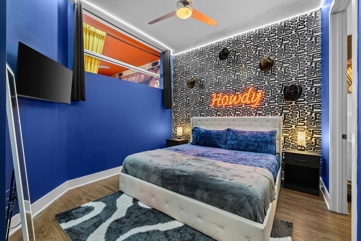 Bienvenido a The Swifie Suite Ubicado a solo una milla de la mundialmente famosa Broadway Street, este espacio cuidadosamente diseñado es perfecto para grupos o familias. Relájate con una bebida en la mano mientras disfrutas de las vistas panorámicas de la ciudad en la azotea, desafía a tus amigos a un partido de futbolín o acurrúcate alrededor de uno de los dos fogones. Es la forma perfecta de relajarte antes de salir a pasar una noche en Broadway.