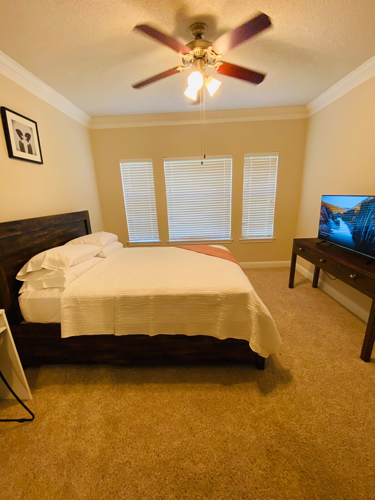 ¡Hola! ¡Tendrás tu propia entrada privada a un dormitorio privado y baño completo + armario en nuestra moderna casa adosada en una comunidad cerrada! Esta habitación está conectada y comparte una pared con el resto de nuestro hogar. No hay cocina. Estamos a poca distancia a pie del centro de la ciudad, Minute Maid Park, BBVA Stadium, George Brown Convention Center, los mejores bares de Houston, cafeterías y restaurantes. Estamos muy cerca de todas las carreteras esenciales, lo que significa Ubers baratos a la mayoría de los lugares.