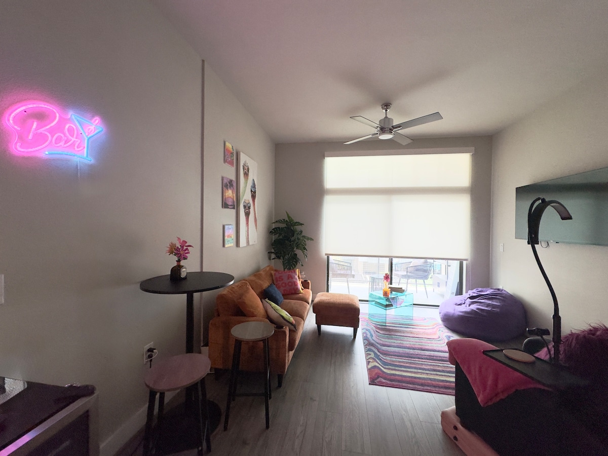 Relax in this super vibey, plant-filled studio with a private downtown view balcony and access to a 24/7 rooftop pool. Guests rave about the calming energy, greenery, décor, and peaceful atmosphere, perfect for unwinding or working. Centrally located and safe, this dog-friendly quiet retreat also features high-speed Wi-Fi and is ideal for solo travelers, couples, or business. With a host who goes above and beyond, experience the peaceful energy that makes this space unforgettable. Book now!