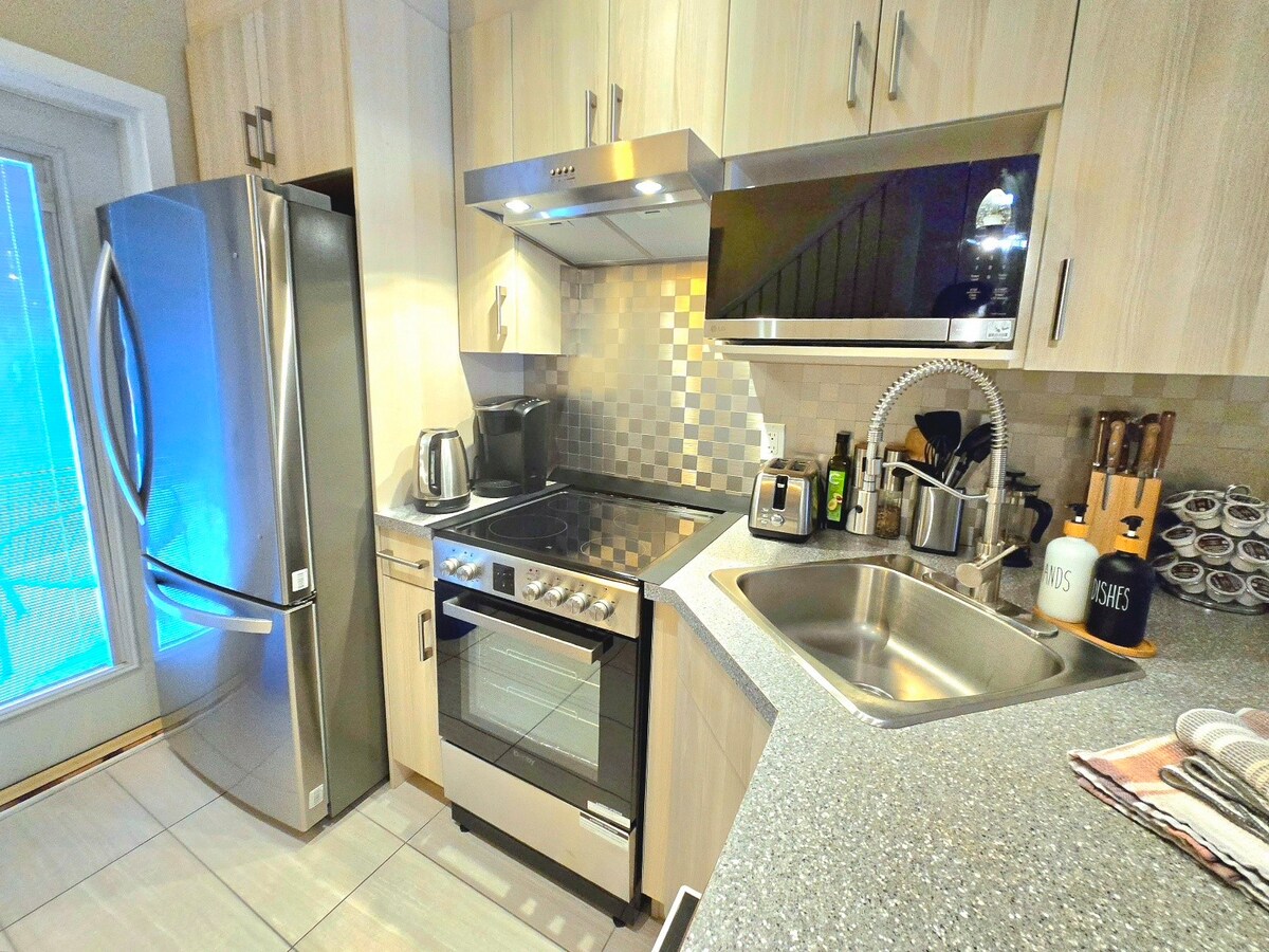 ¡Despierta con las vistas a la montaña que te rodea! A 5 minutos al oeste de Canmore y a 15 minutos de la ciudad de Banff, este hogar lejos de casa es el punto de partida perfecto para tu próxima aventura en las magníficas Montañas Rocosas canadienses. Esta suite adosada de 2 plantas y 2 dormitorios incluye 3 camas tamaño queen, 1 sofá cama queen, chimenea y una cocina totalmente equipada. Renovado en diciembre de 2024. ¡Capacidad para 8 personas! Comodidades incluidas. - Aire acondicionado Mini Split - Wifi - Chimenea El público: - Aparcamiento gratuito. - Jacuzzi. - Parrilla y fogata. - Lavandería