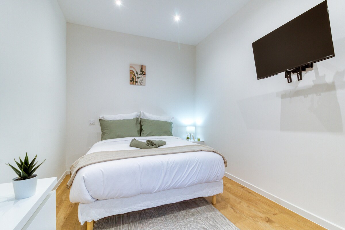 - Apartamento tranquilo, moderno y de diseño situado a 2 minutos del centro de la ciudad y de las tiendas, a 10 minutos a pie de la estación de tren de Cambrai. - Completamente renovado con todas las comodidades y wifi. - Cocina abierta totalmente equipada con nevera americana, lavavajillas - Cuarto de baño con ducha y bañera. - Un dormitorio equipado con una cama king size, armario y TV - Un lavadero con lavadora - Un aseo - Un sofá cama - ¡Se proporcionan sábanas, toallas y guantes de baño! - Una cafetera Senseo