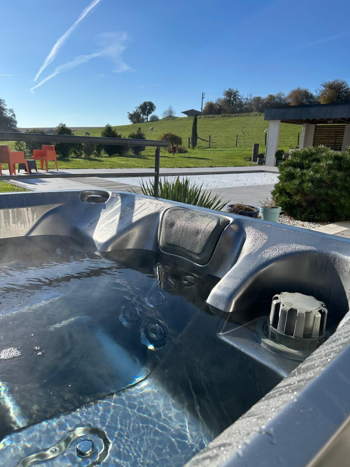 Relájese en este alojamiento único y sin vecinos , con su jacuzzi XXL para un momento de relajación inolvidable . En un entorno natural y relajante , venga a escapar a este pequeño rincón de felicidad con jacuzzi privado , cama King Size , cocina equipada , vitrocerámica, mini horno, microondas, nevera , hervidor de agua , cafetera Dolce Gusto , televisión , baño con ducha . Amazon, Netflix Terraza privada con mesa , sillas , tumbonas , hamaca doble . Ambiente puro y zen .