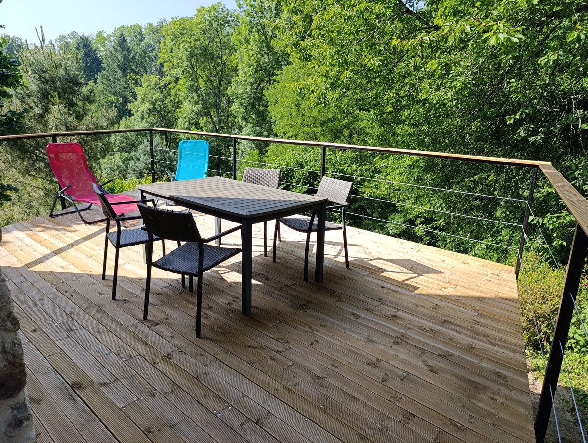 Pequeña casa en el corazón del Molino rodeada de bosques y su río sin vecinos. Podrá relajarse en su terraza con jacuzzi climatizado durante todo el año. Bosque de Chabrières a 3 km con sus rutas de senderismo, bicicleta de montaña, su parque de lobos y su laberinto gigante … Lago de Courtilles a 7 km para nadar, pasear en bote a pedales ……