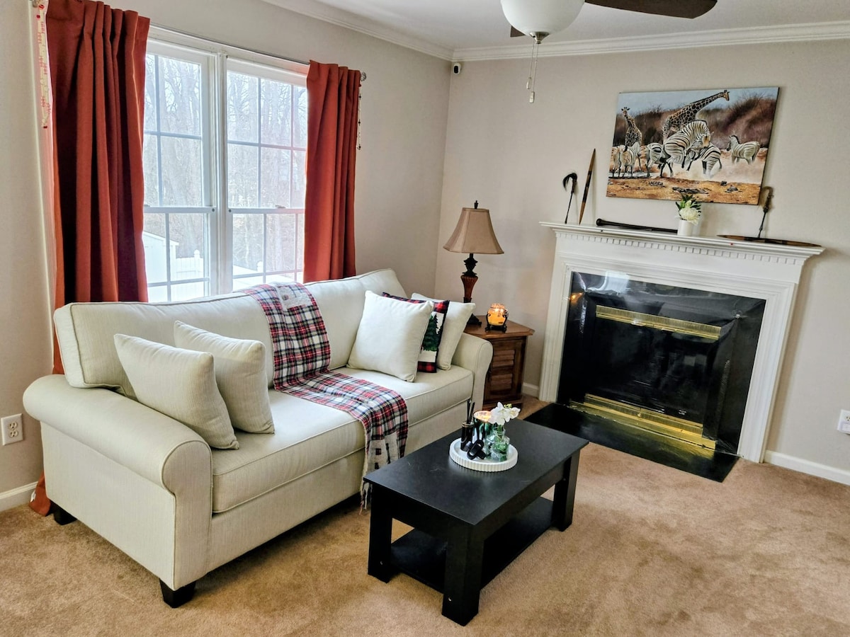 Escape to Clayton's Place, a restored 1910 lake-view mill house perfect for 4 guests. This pet-friendly retreat features 2 bedrooms (king, bunks), a modern kitchen, a dedicated workspace with fast Wi-Fi, and a large fenced yard. Enjoy serene mornings on the porch, evenings by the fire pit, and the convenience of an on-site EV charger. A peaceful, historic getaway just minutes from Mebane, Burlington, and Elon University.