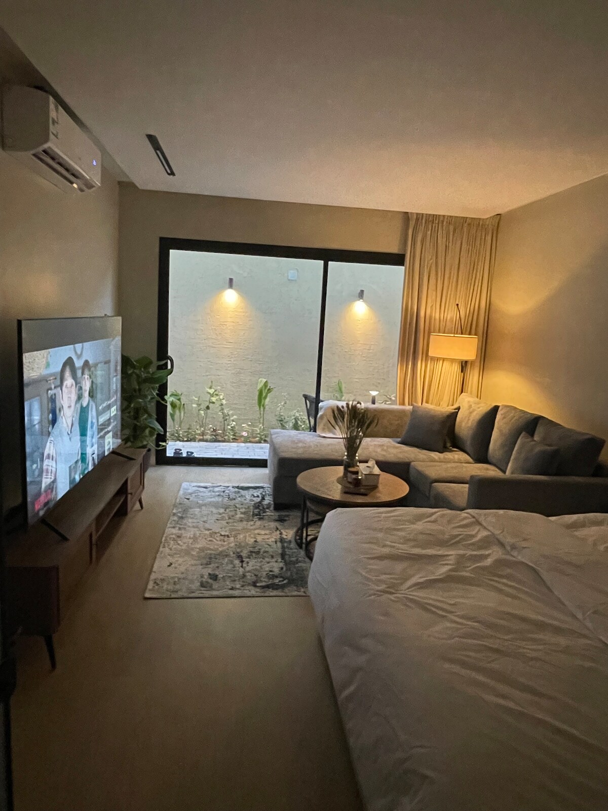 Este lugar único tiene un estilo propio, diseñado para ofrecer comodidad, elegancia y un toque de lujo. Cada habitación está cuidadosamente amueblada con una decoración elegante y acabados de alta gama. Disfruta de servicios de primera calidad que incluyen una experiencia de cine VIP, televisores de pantalla plana QLED, máquinas de té/café, secadores de pelo, toallas suaves y un paquete de bienvenida de cortesía. Ya sea que estés aquí para una escapada corta o una estancia más larga, te sentirás como en casa con nuestras comodidades modernas y toques personalizados.